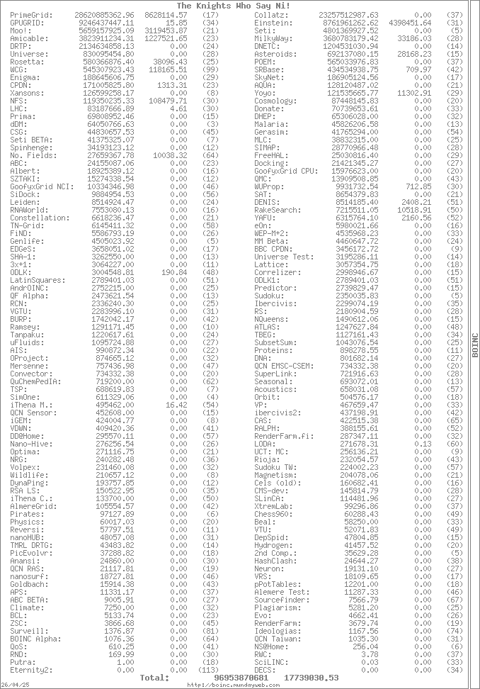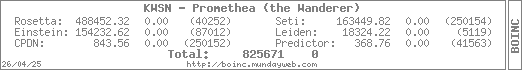Only two KWSN people on this project, which is fine since the WU's are really short ( 5 minutes normally). And no Chess work, instead they are using other work like primegrid or qmc right now.